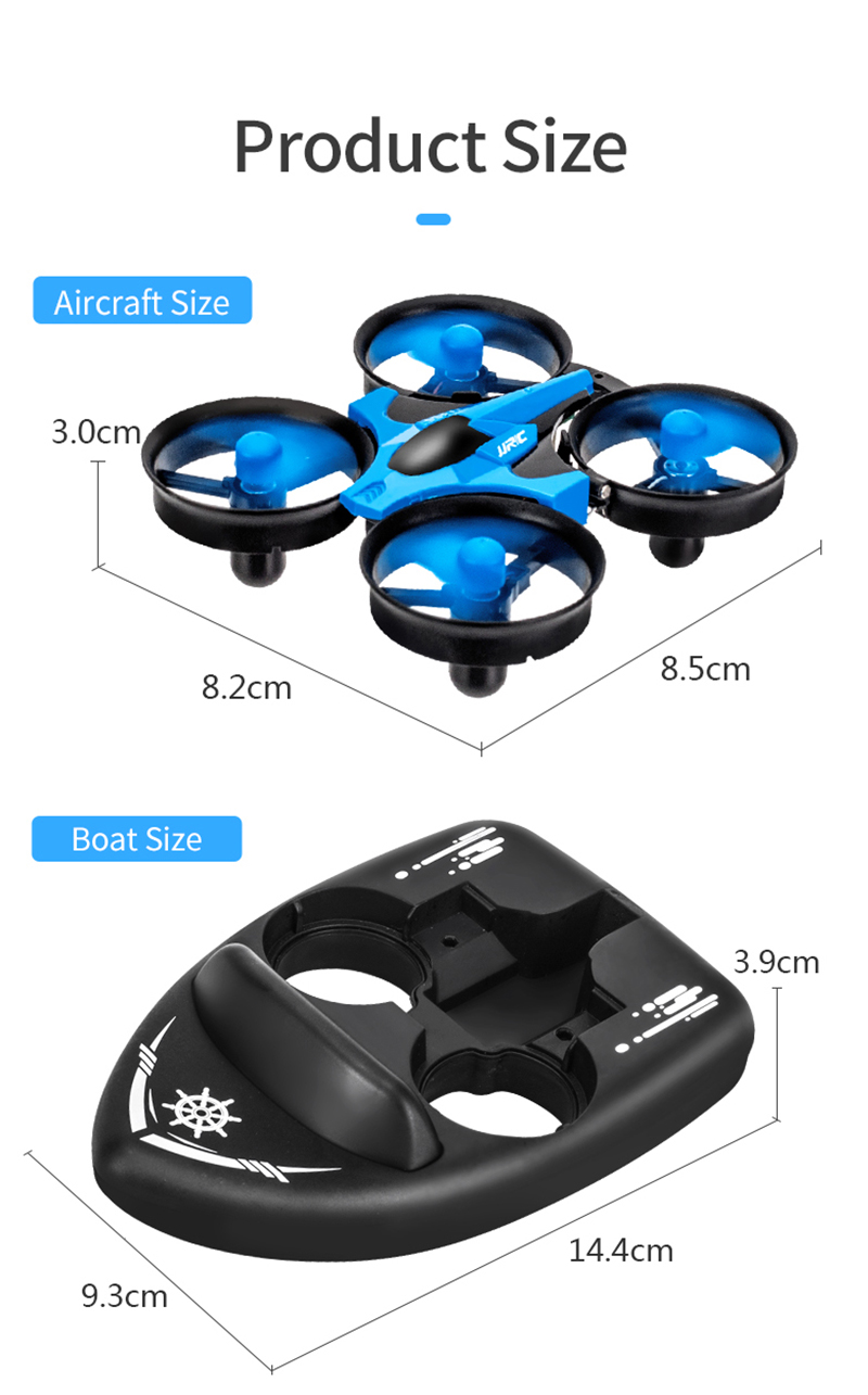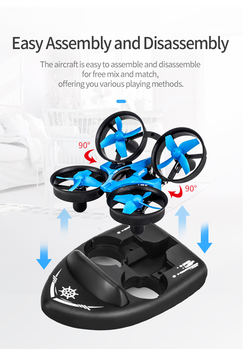 2.JJRC H36F 2.4G Vehicle Drone Boat 3in1 Multifunction Remote Control Toys With Headless Mode 3D Flips And Cool Light