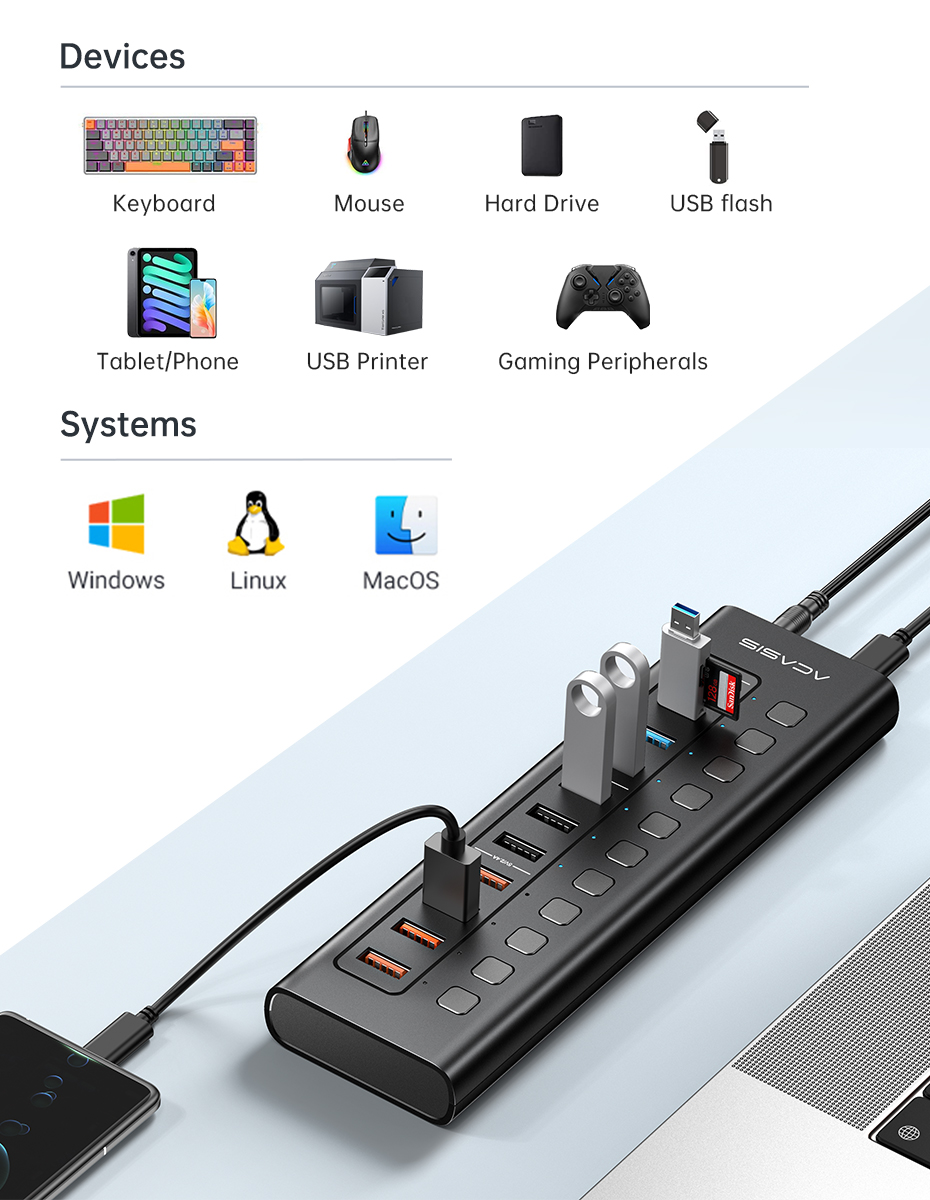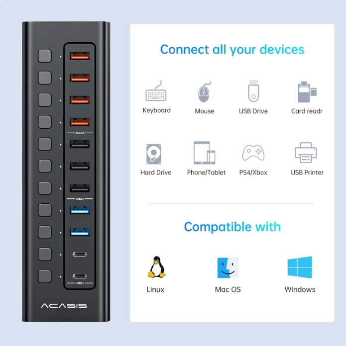 ACASIS USB 11-Port Powered USB Hub: Solve all your connection problems!