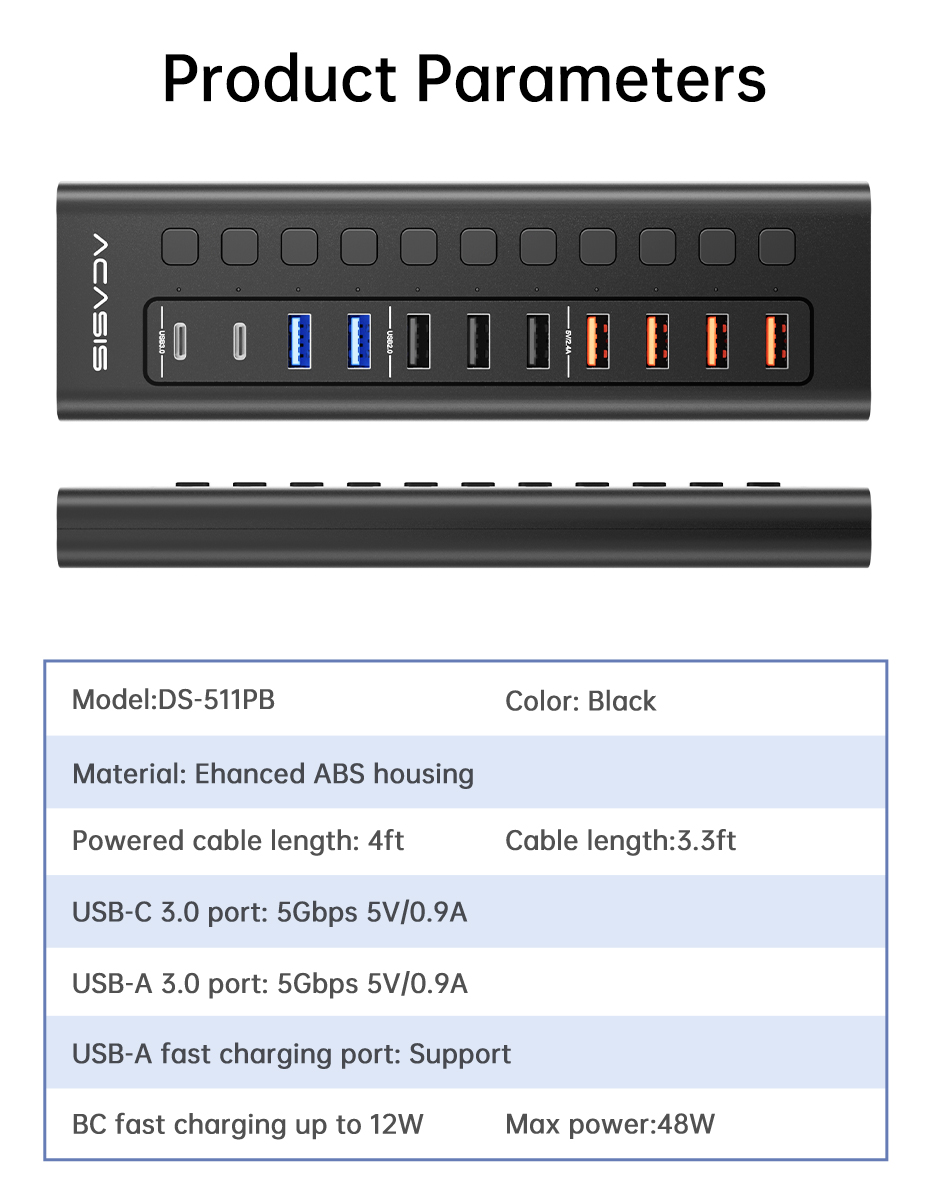 Whether you need to connect multiple devices, transfer large amounts of data, or charge your devices quickly, the ACASIS USB 11-Port Powered USB Hub can easily meet all your needs and enjoy a smooth connection experience.