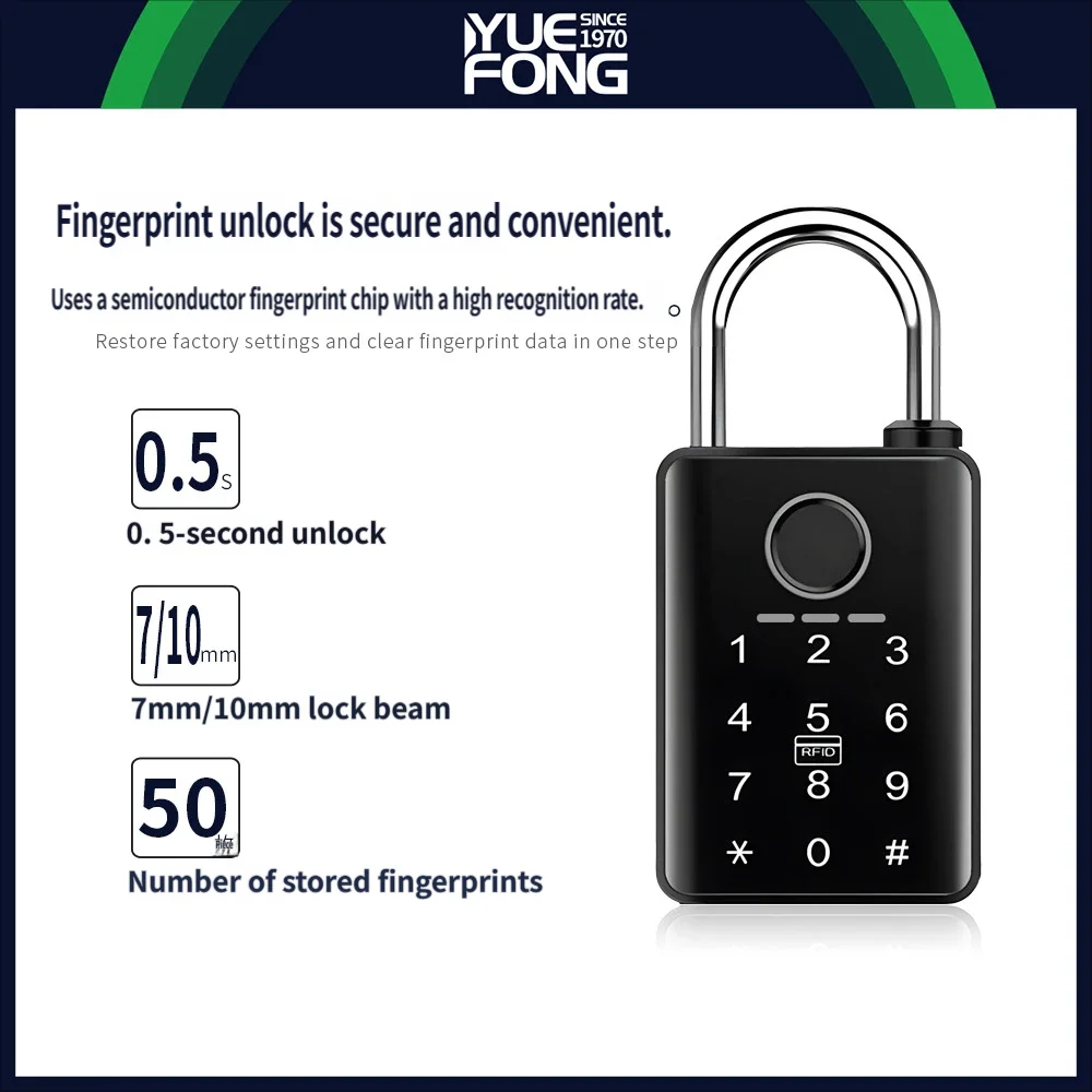 - Fingerprint Unlock: Uses a semiconductor fingerprint chip, 0.5-second ultra-fast unlocking, can store 50 fingerprints, high recognition rate, unlocks with a single touch.