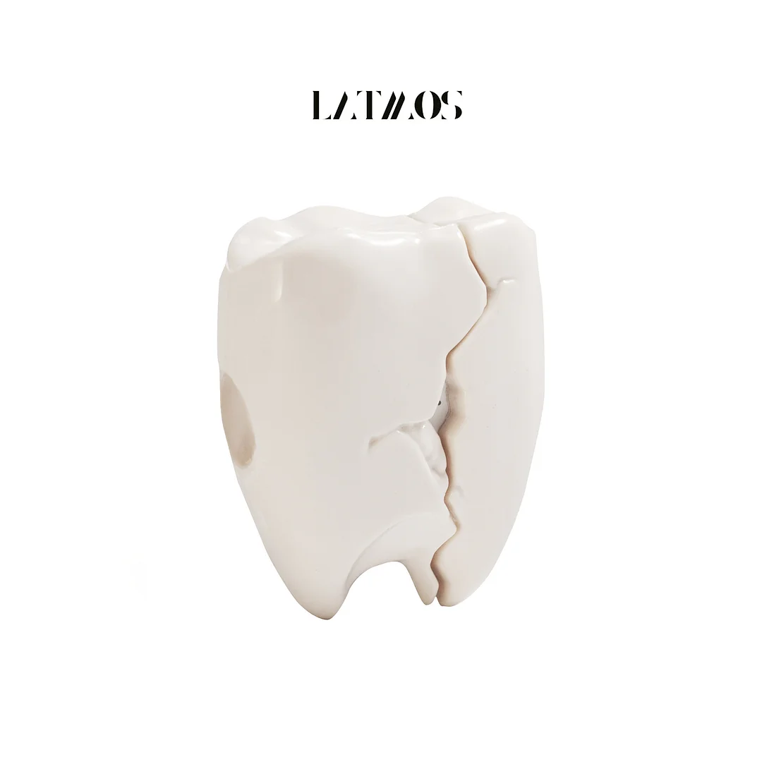 This headphone case is inspired by teeth, creating a unique and eye-catching design. The design features a realistic tooth shape, with natural cracks on the surface, reminiscent of a "damaged" tooth, creating a playful and unique look. The case is split into two sections, with a detachable design that makes it easy to place and remove the earphones while adding a three-dimensional feel, reminiscent of real teeth biting into each other.