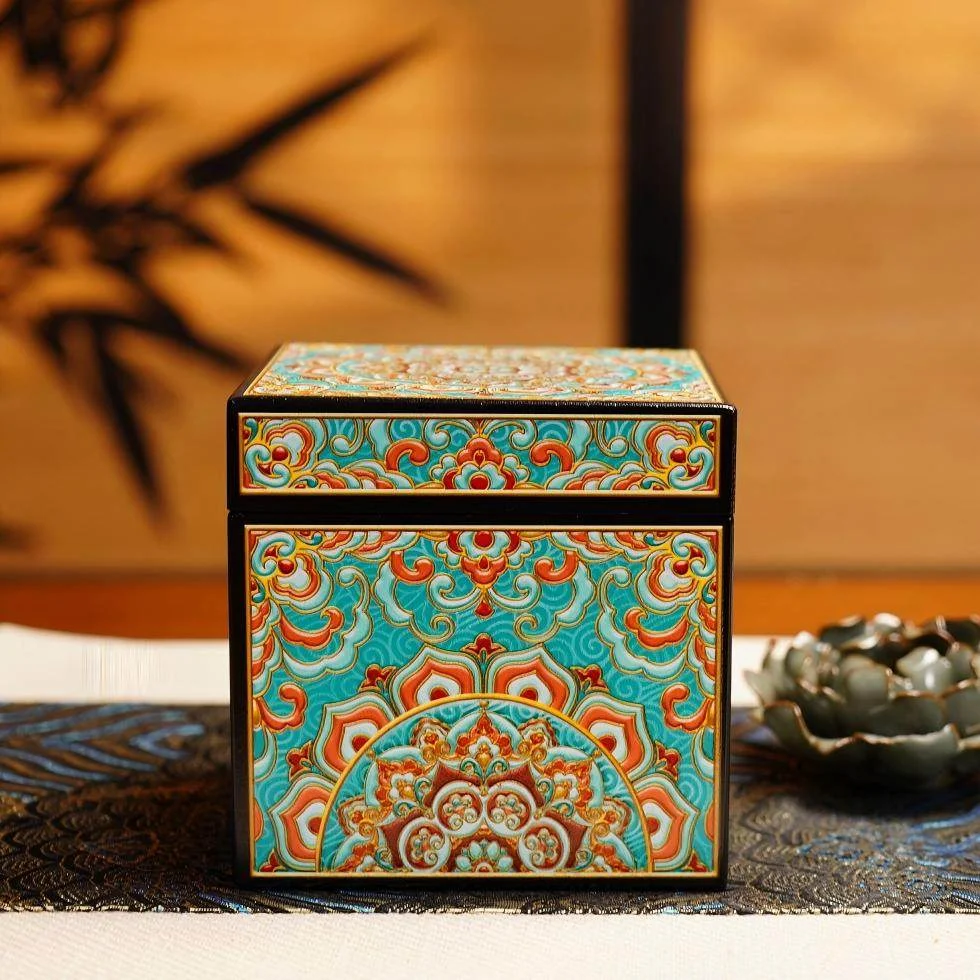| 🔵 Interlocking Lotus | Turquoise base with red & gold interlocking lotus, Dunhuang mural color scheme | Endless prosperity and good fortune |