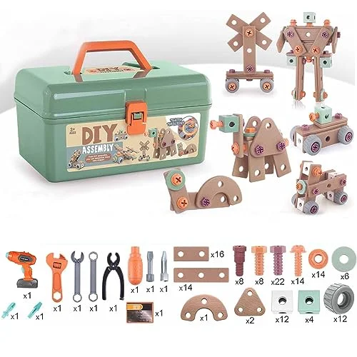 Unleash the potential of your budding engineer: Encourage your child to build fun and creative 2D or 3D models like horses, cars, and robots. Perfect for kids curious about Dad's tool kit, this role-play tool set sparks imagination and fosters endless creativity and DIY skills. As they build models, they develop fine motor skills, hand-eye coordination, and grasp basic engineering concepts. This educational toy is suitable for ages 4-8, 5-7, 6-8, and 8-10.