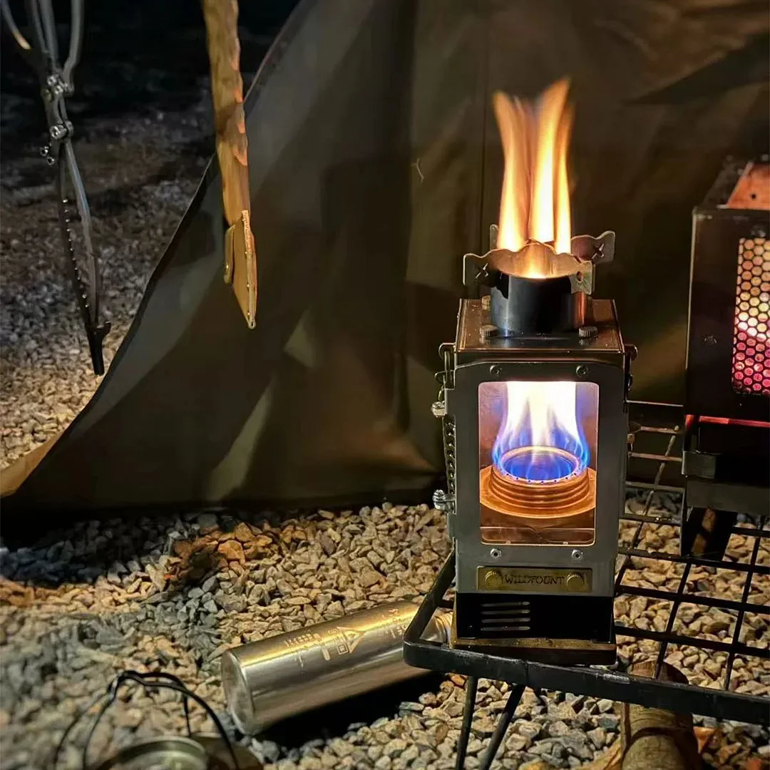 - Firewood Mode: Can burn small firewood and alcohol wax, with flames leaping from the top chimney and glass viewing window, providing both heating and a fire viewing atmosphere during outdoor camping, and the windproof design is not afraid of outdoor breezes.